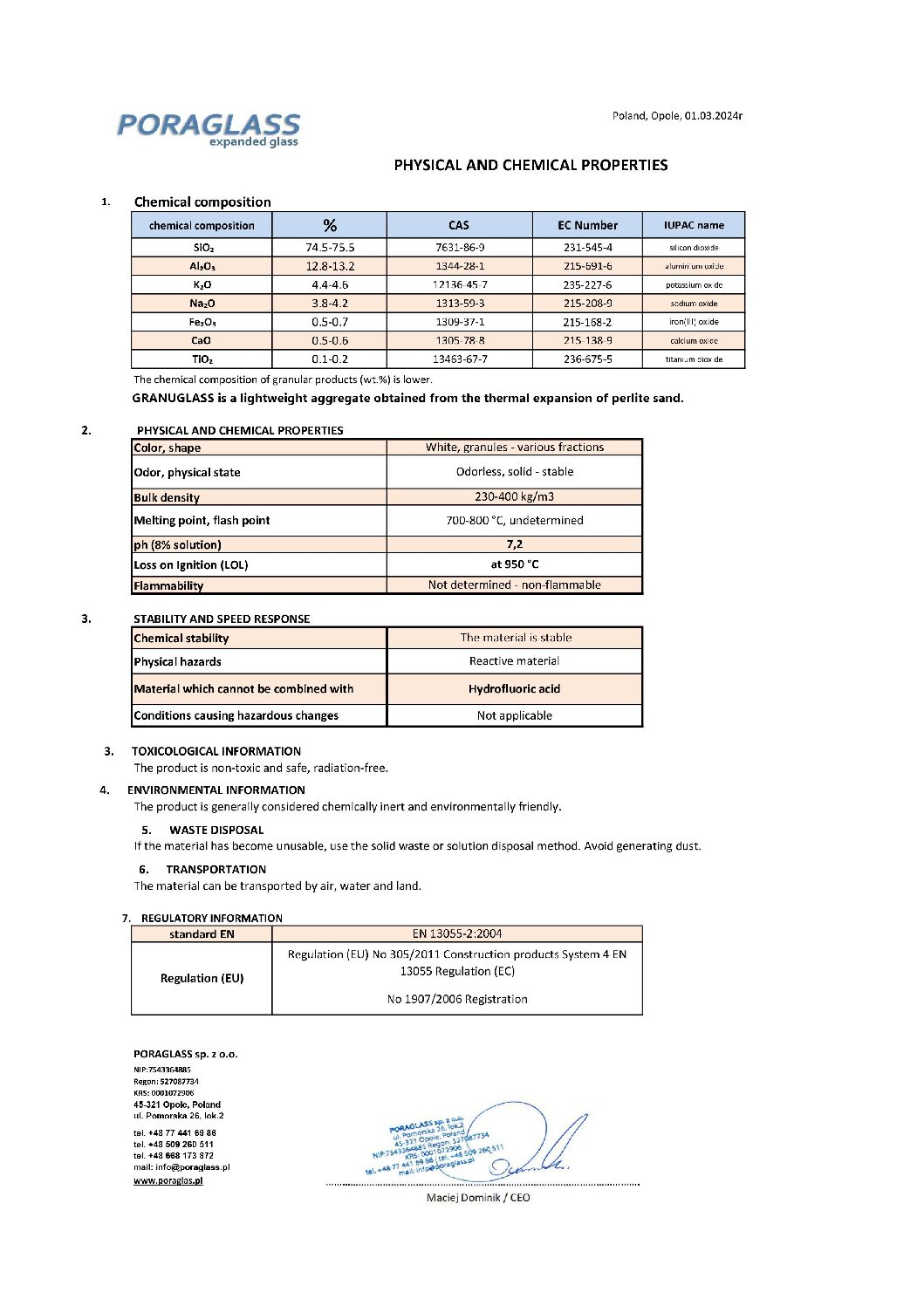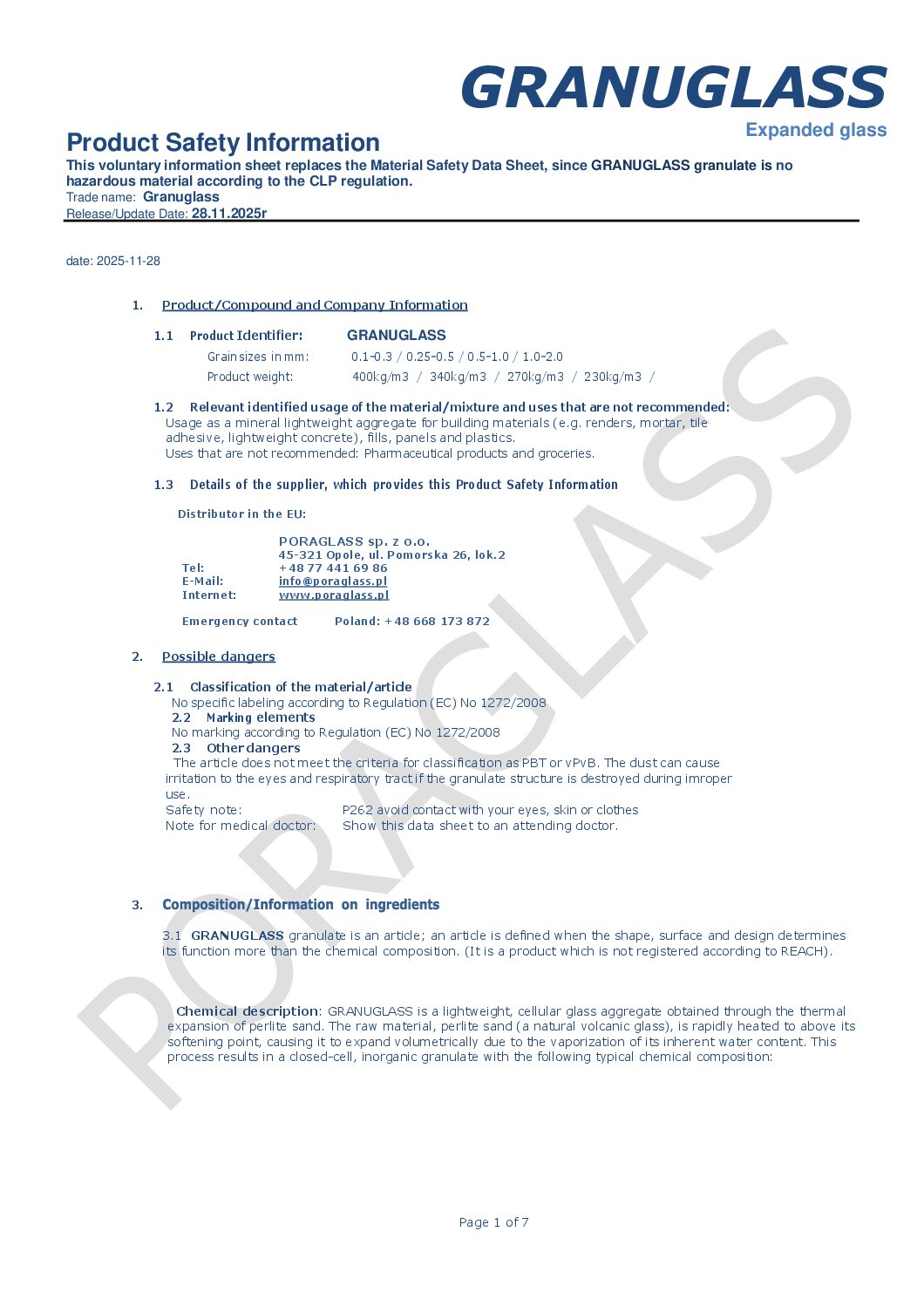 Material Safety Data Sheet PORAGLASS Update: 2025.11.28